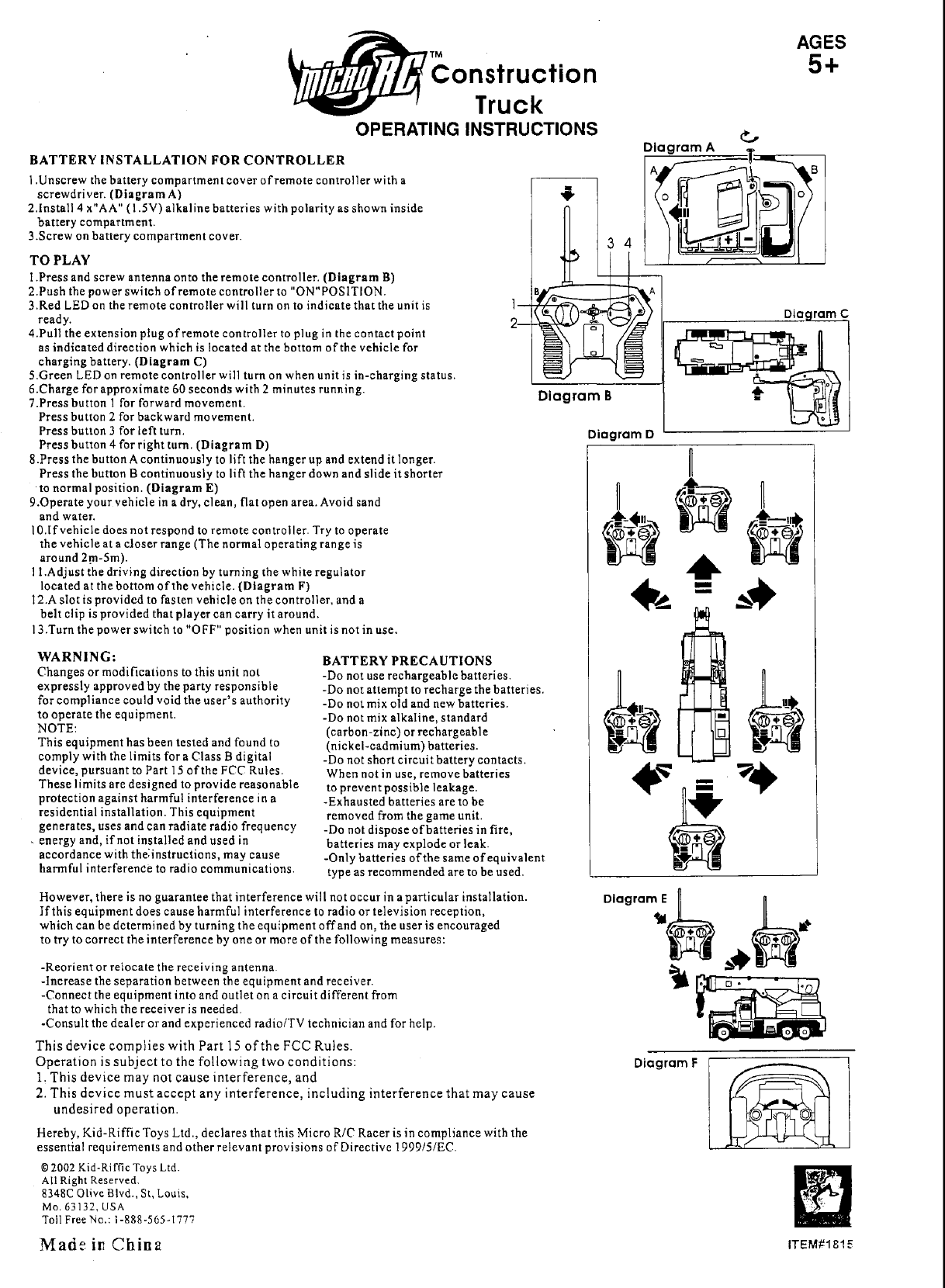 Kid Riffic Toys 1815-R49 RC Car User Manual