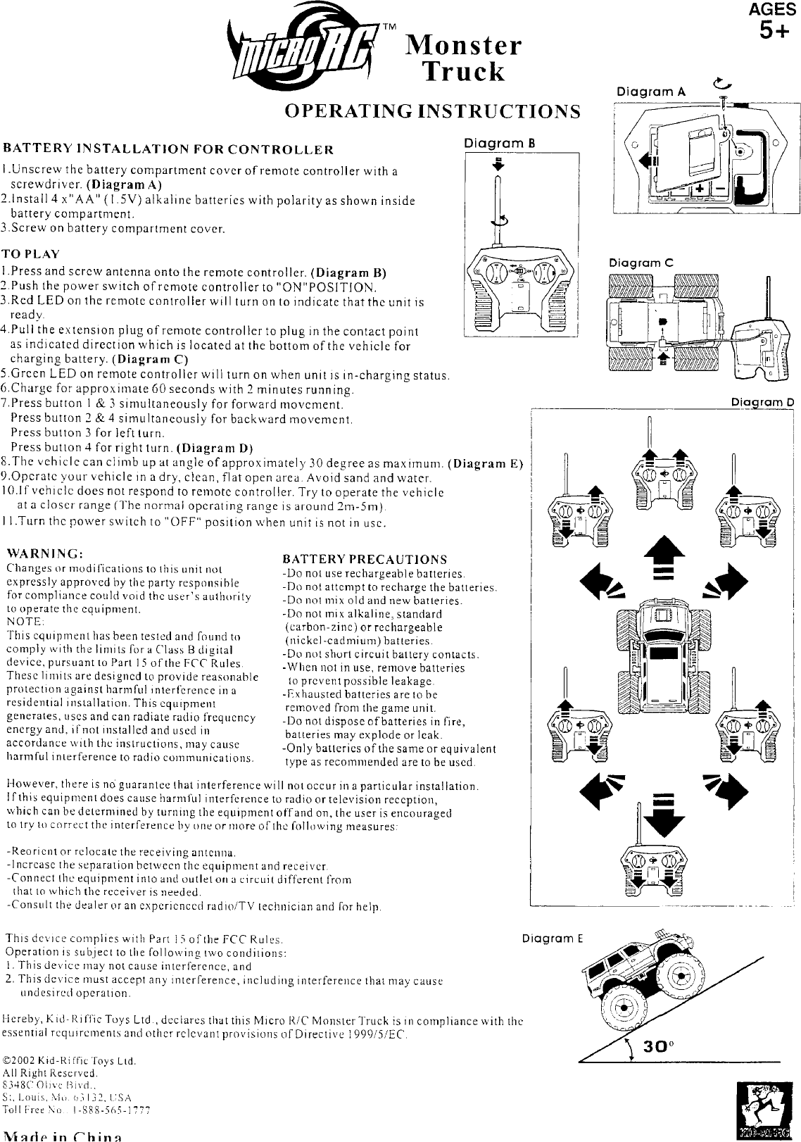 Kid Riffic Toys 1822-T49 RC Car User Manual