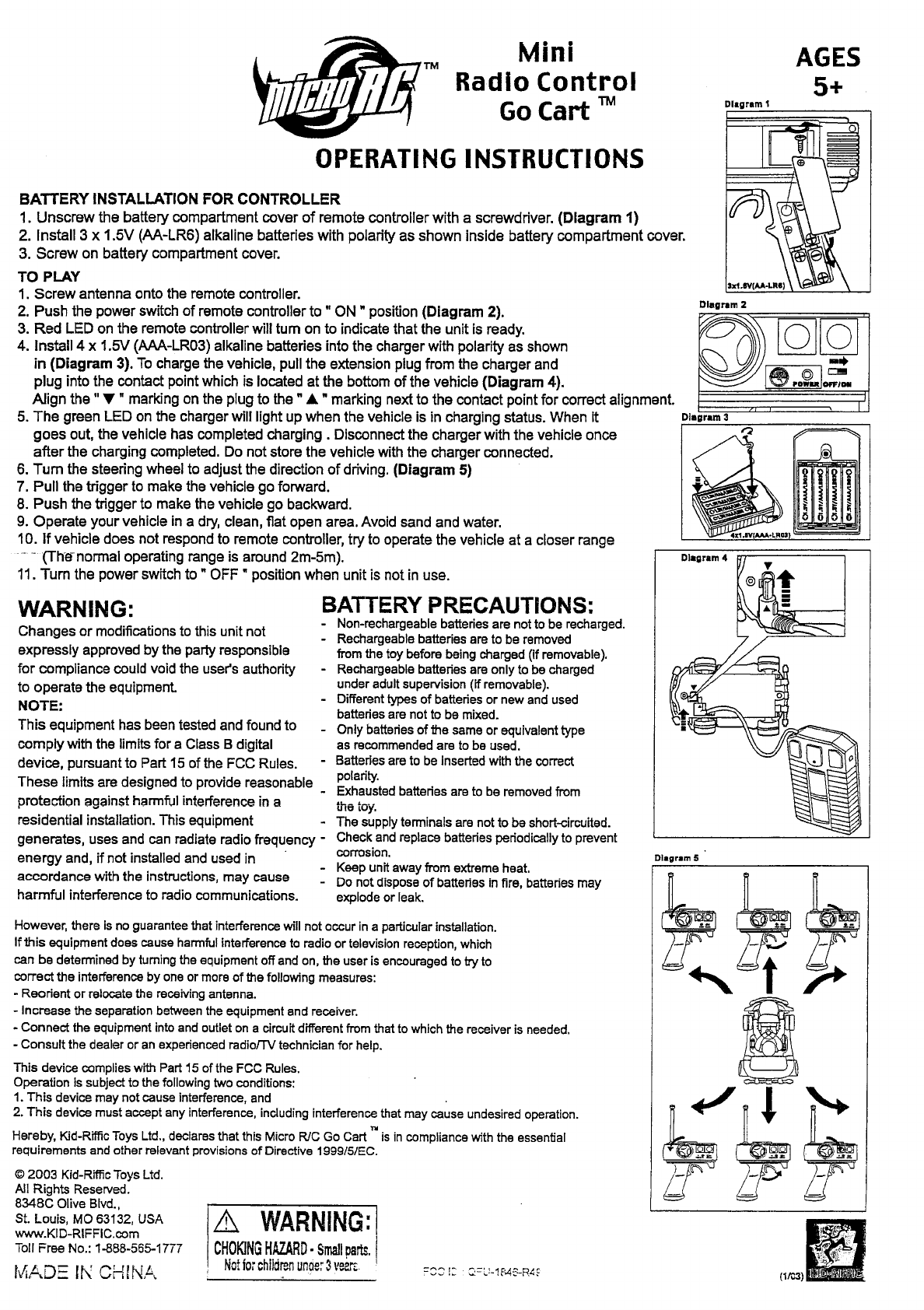 Kid Riffic Toys 1846-R49 RC Car User Manual