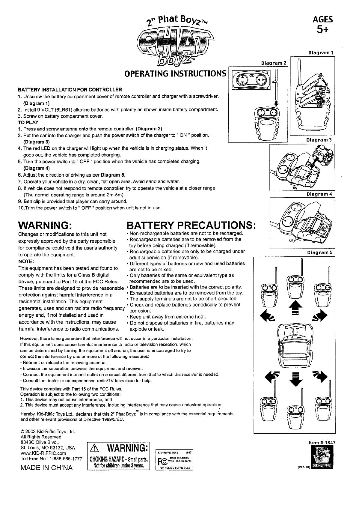 Kid Riffic Toys 1847-T27 RC Car User Manual