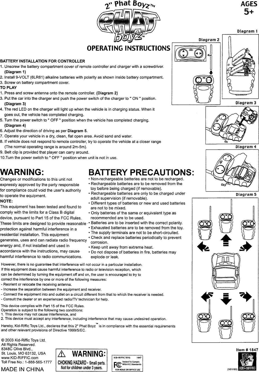 Kid Riffic Toys 1847-T49 RC Car User Manual