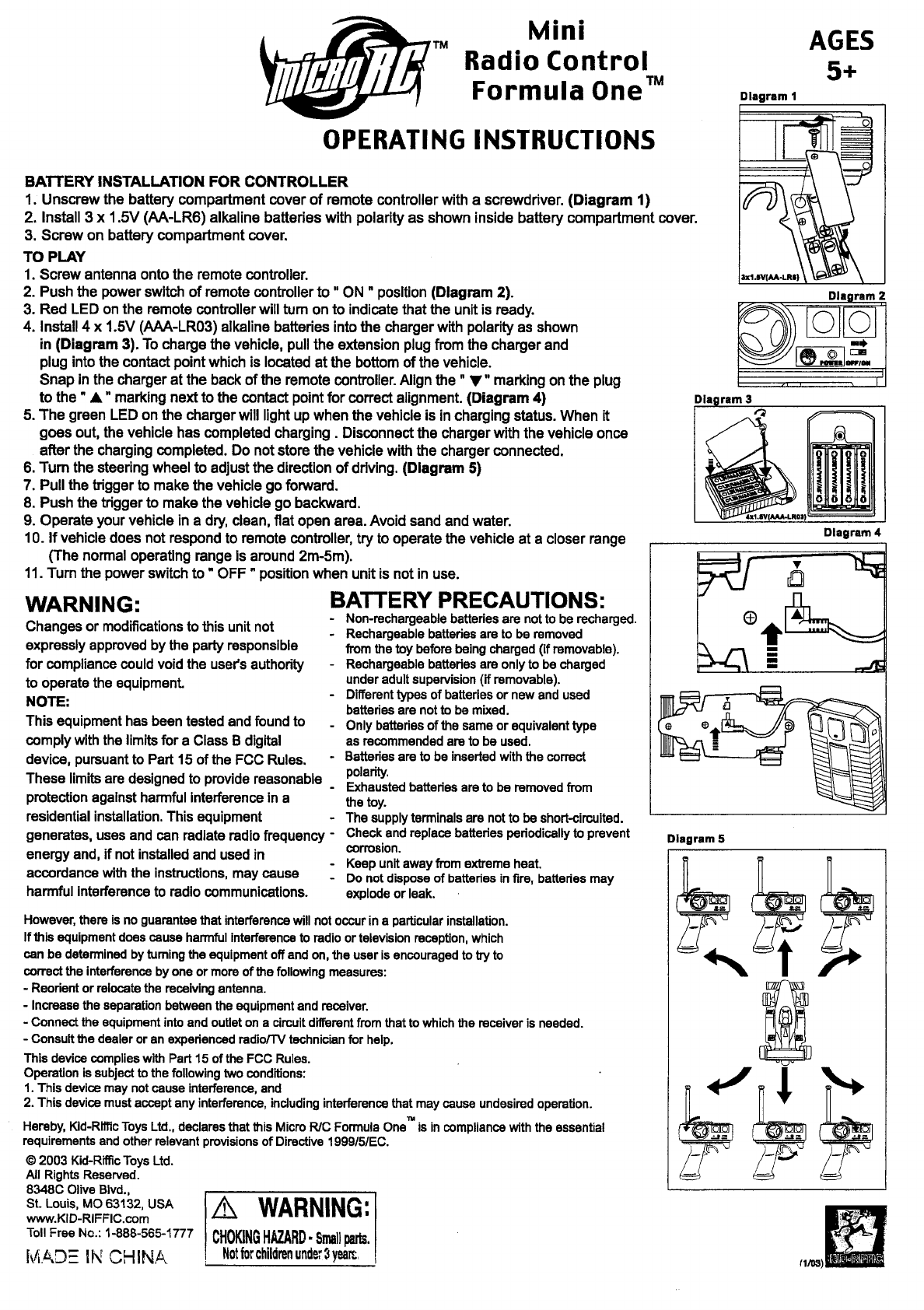 Kid Riffic Toys 1850-R49 RC Car User Manual