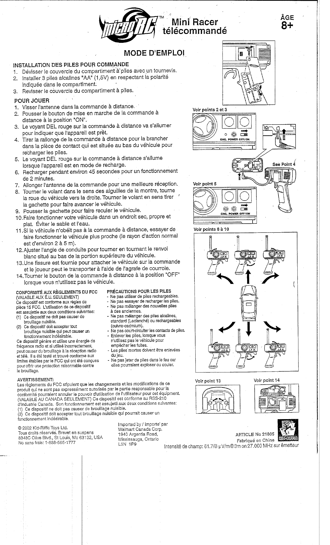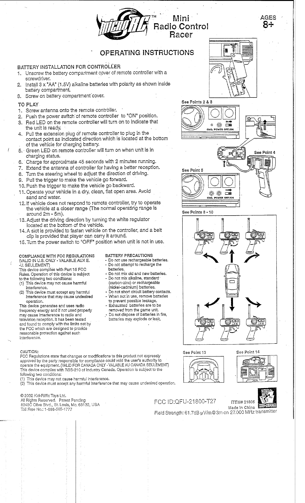 Kid Riffic Toys 21800-T27 RC car User Manual