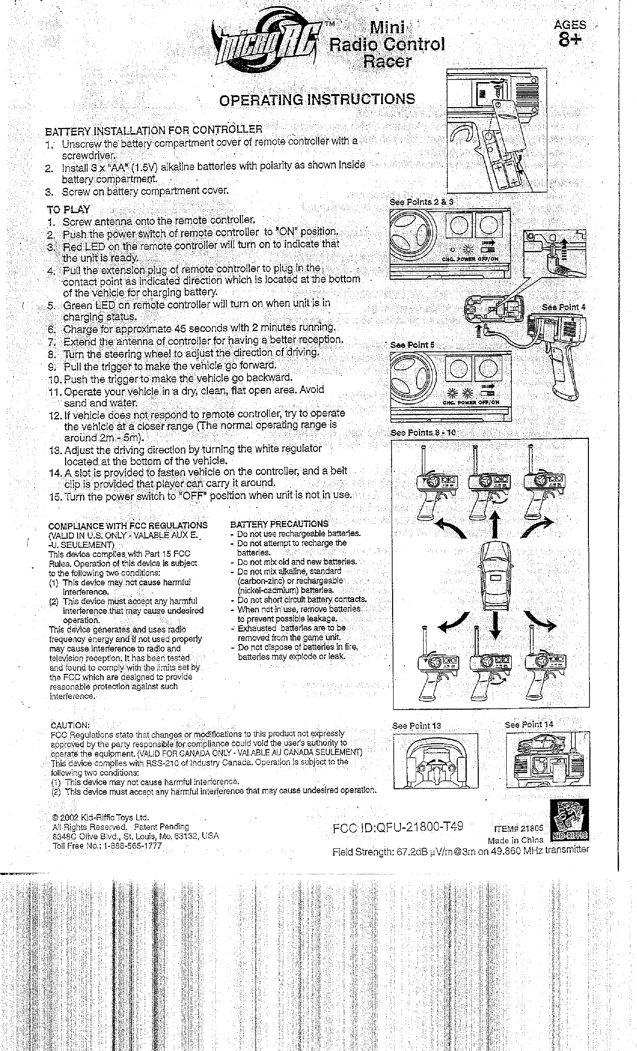 Kid Riffic Toys 21800-T49 RC Car User Manual