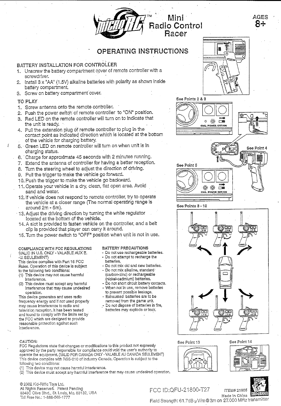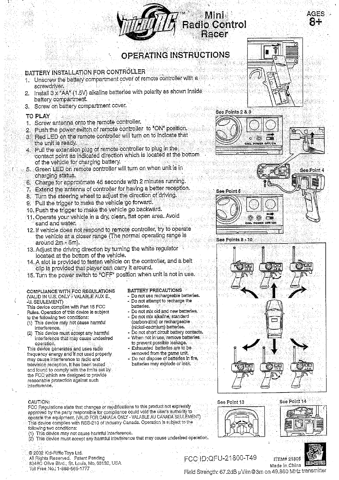 Kid Riffic Toys 21800-T49 RC Car User Manual