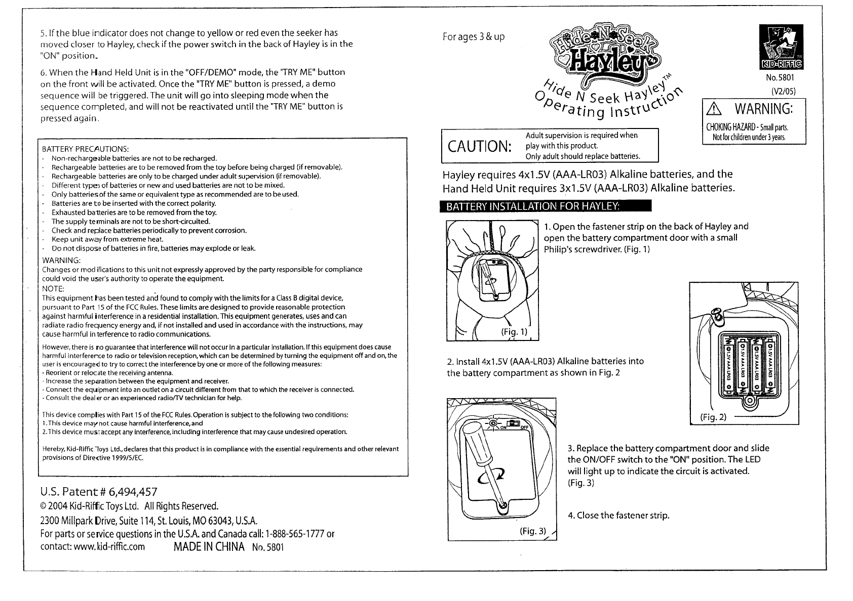 Kid Riffic Toys 5801-R49A RC Toy User Manual
