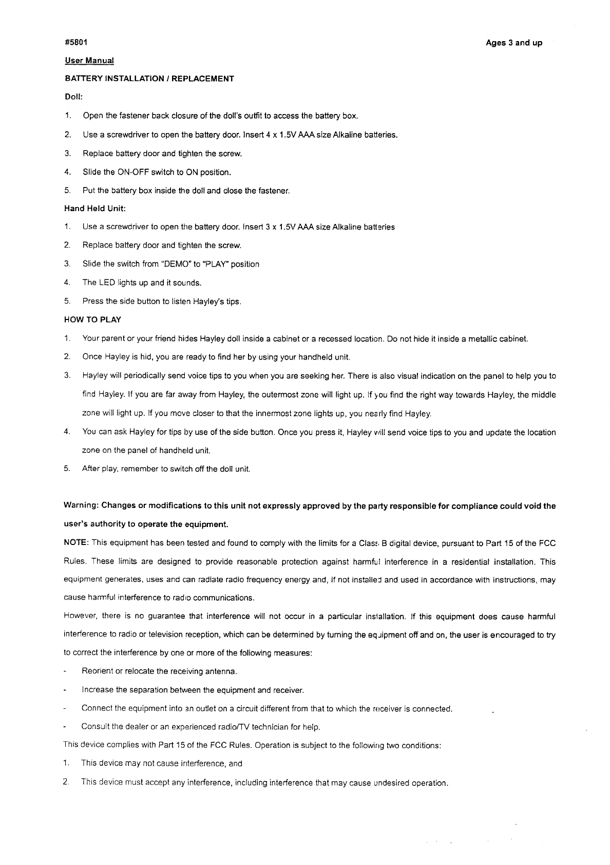 Kid Riffic Toys 5801-T49 RC Toy User Manual