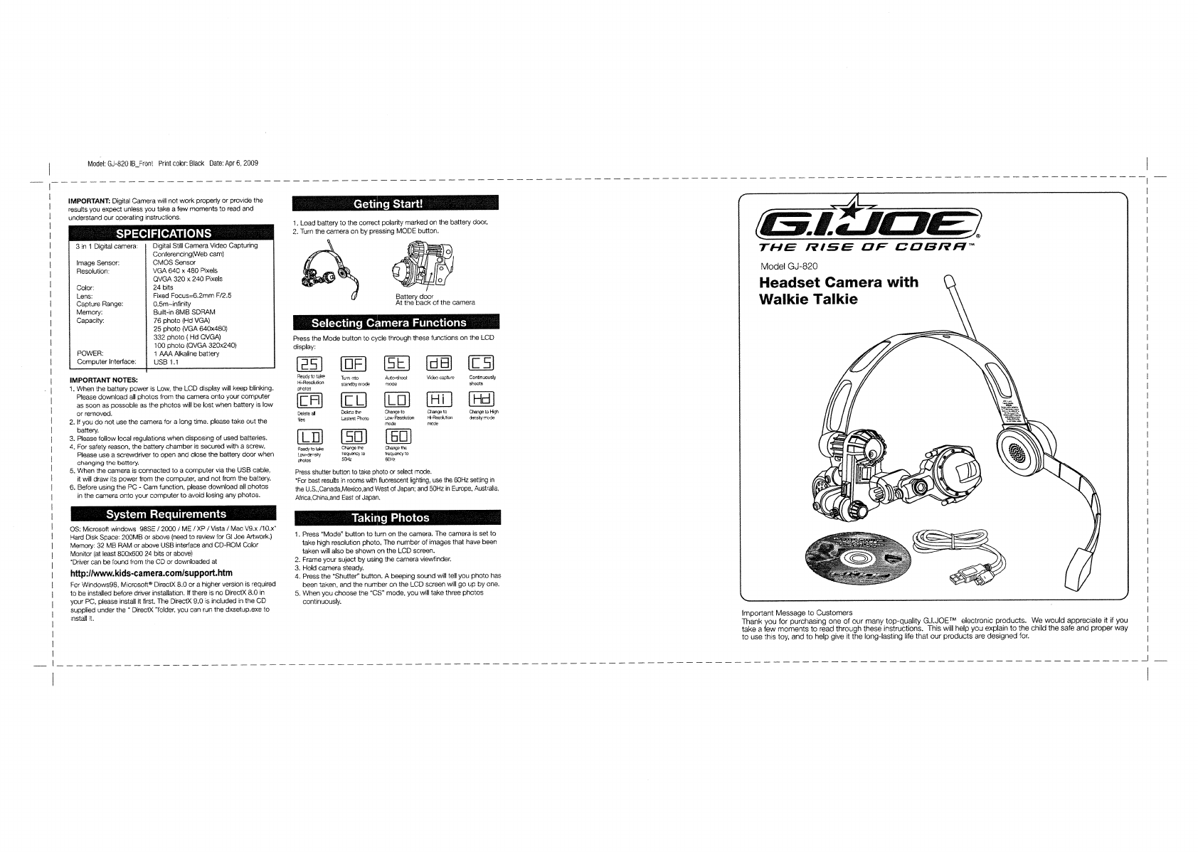 Kiddesigns GJ820 Toy Walkie Talkie User Manual