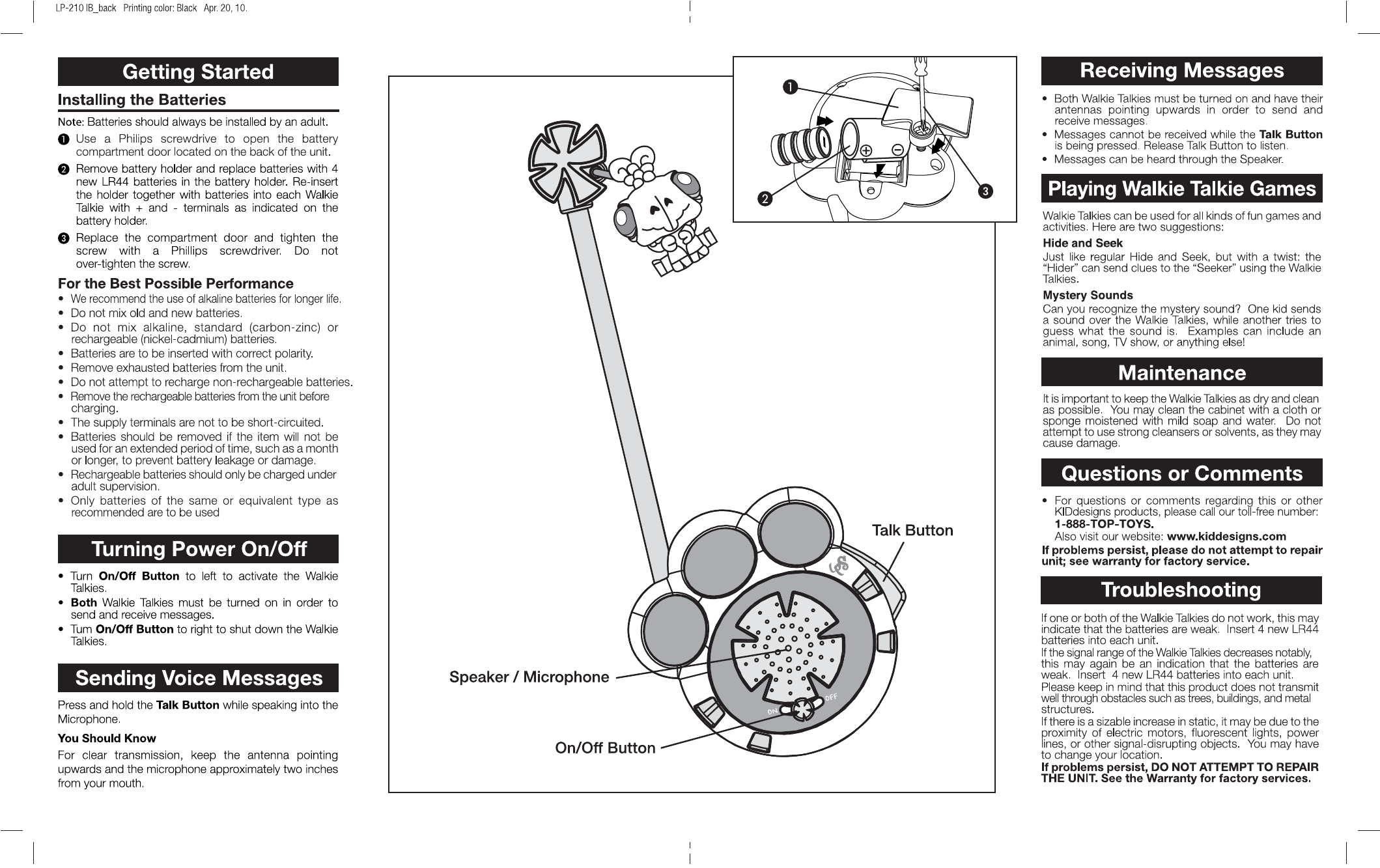 Kiddesigns LP210 Walkie Talkies User Manual LP 210 IB 0513