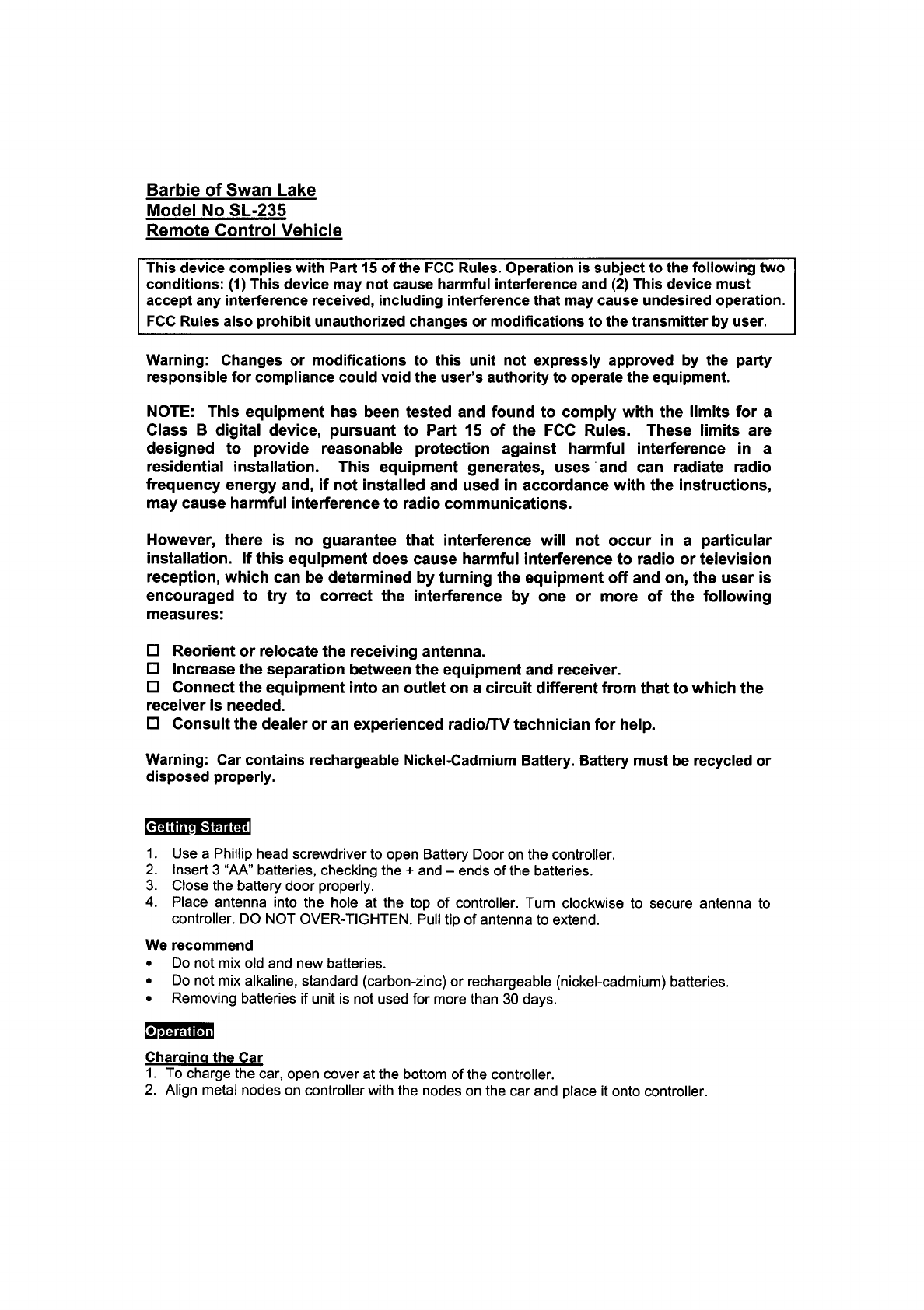Kiddesigns SL235-49MR RC Toy User Manual