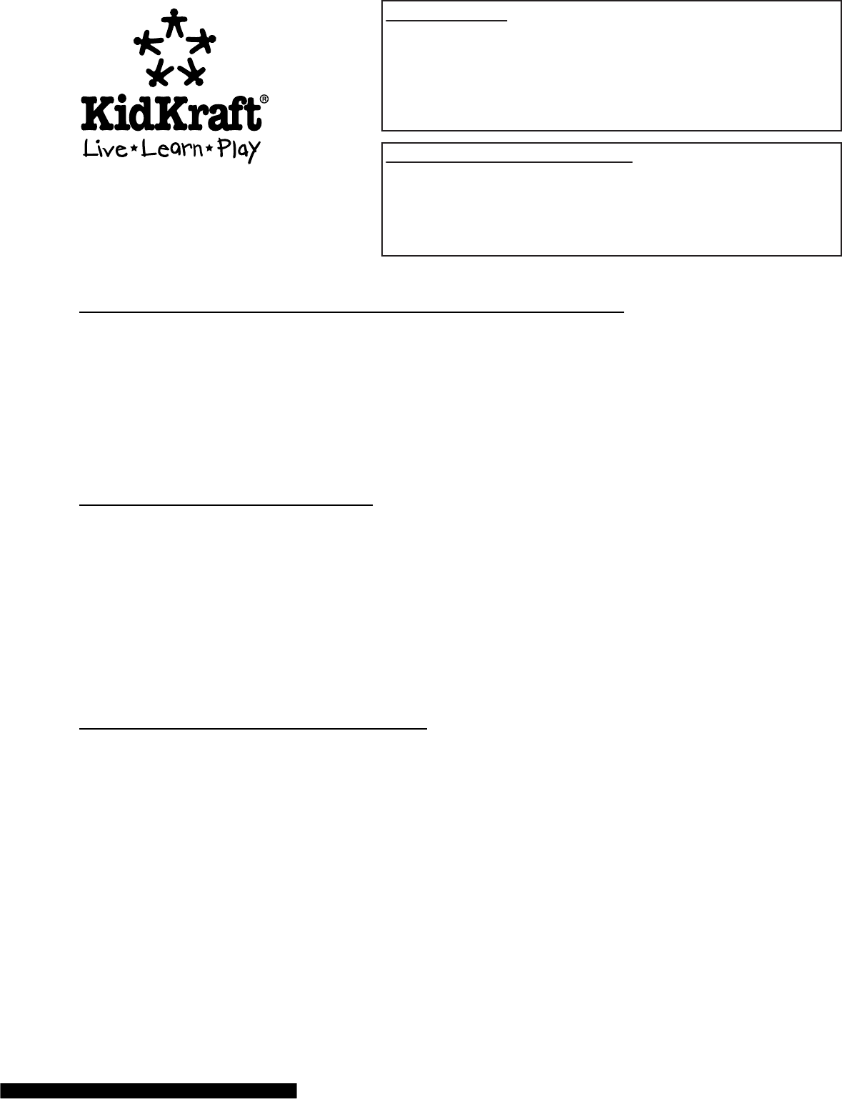 TO SUBMIT A WARRANTY CLAIM PLEASE CONTACT KIDKRAFT CUSTOMER SERVICE AT 1-800-933-0771