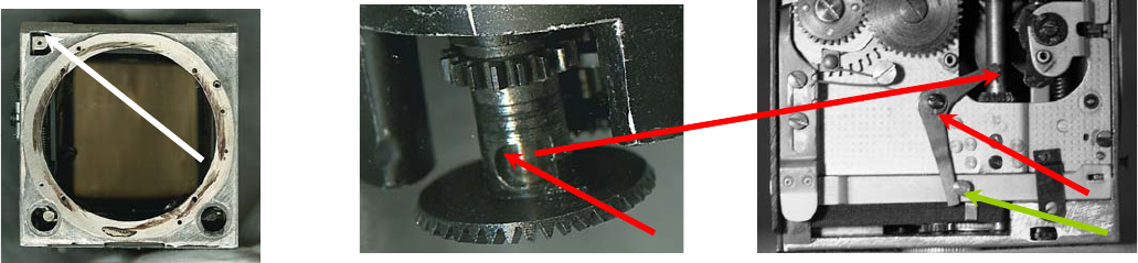 4. Modifying one of the gears in the camera winder by making a cut-out in the axle,