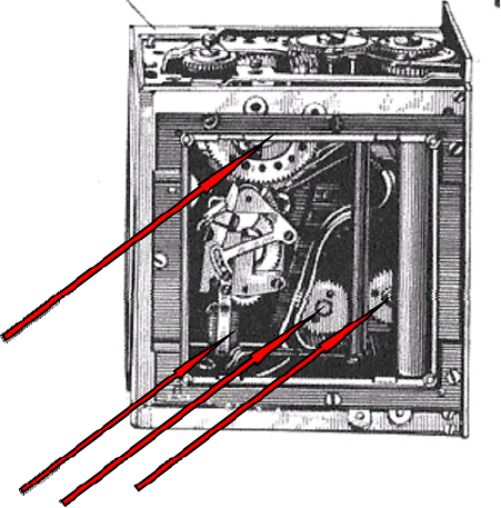 bar, moved by the shutter release. The top end of this lever fits into the hole made in the axle in 3).