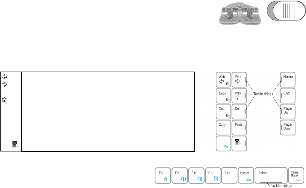 accurate touch typing. Note that with Fn held down, the first three left-side hot keys perform Bluetooth channel selections.