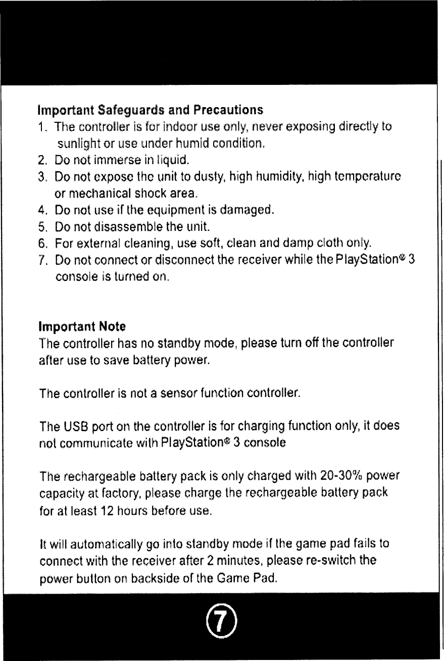 King Chuang Tech and Electronic KC-2616B PS3 Wireless Controller (Dongle Unit) User Manual