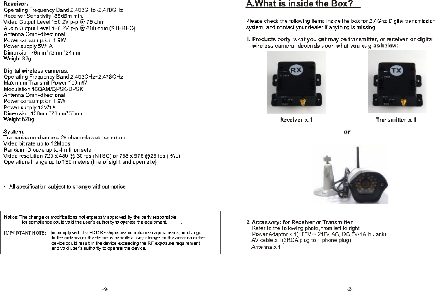 Kingwave Technology Co., Ltd. 2.4GHz Wireless IR Color CCD Camera Exhibit E User Manual