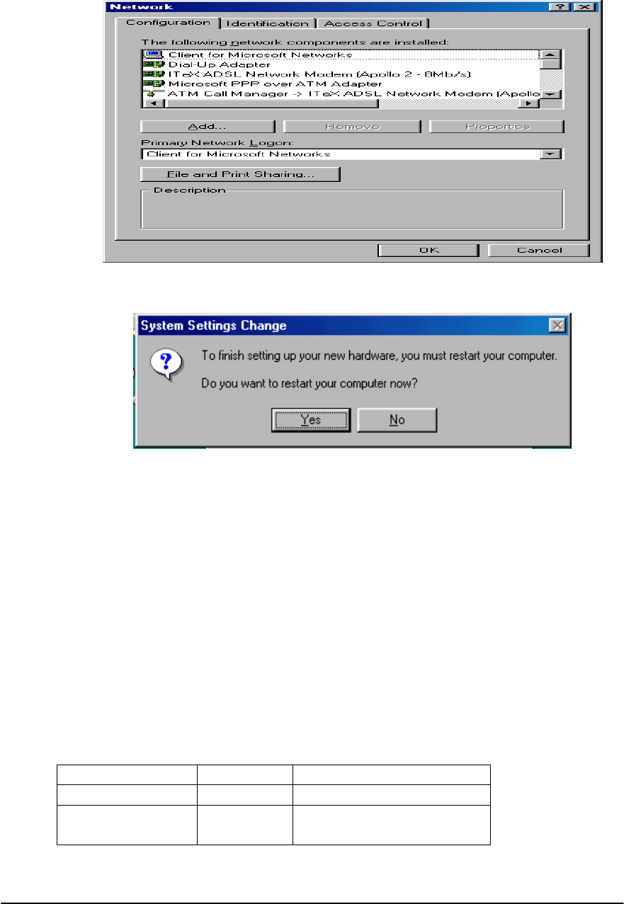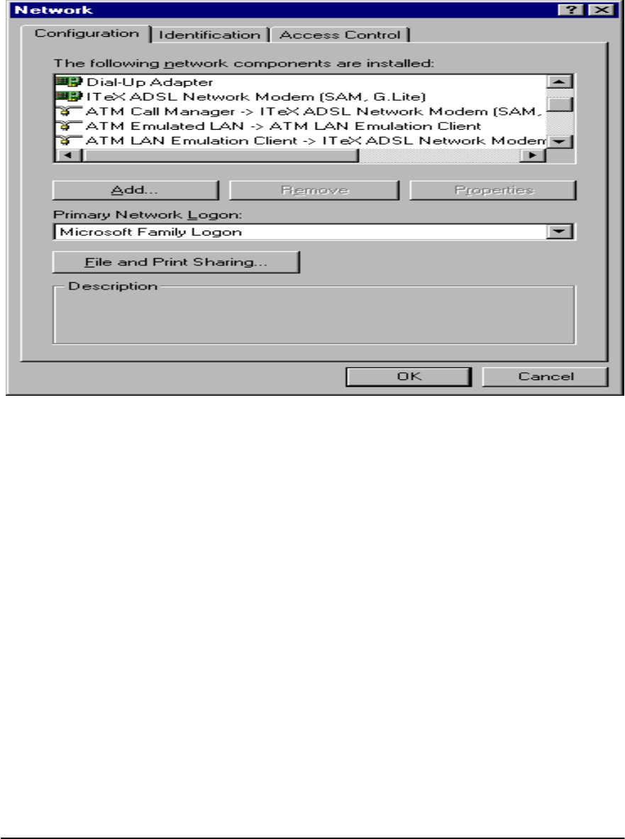 the modem. Also, since the ITeX ADSL Network Modem comes equipped with