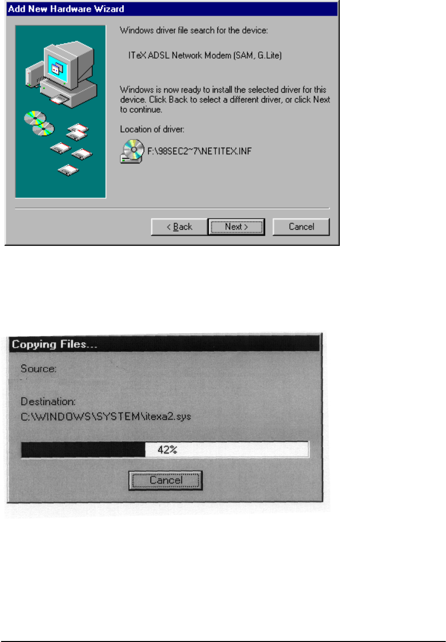 Windows will find the ITeX ADSL Network Modem and will search for a device