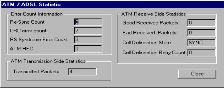 ATM Receive Side Statistics - displays the number of good and bad packets received.