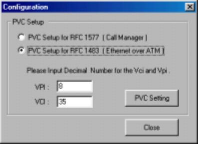 modems PVC values for RFC1577 and RFC1483. To change the PVC values, simply