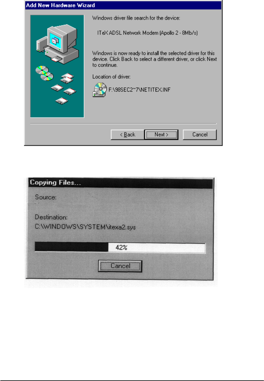 be used for activating the PPP over ATM connection. Insert the Windows 98 CD