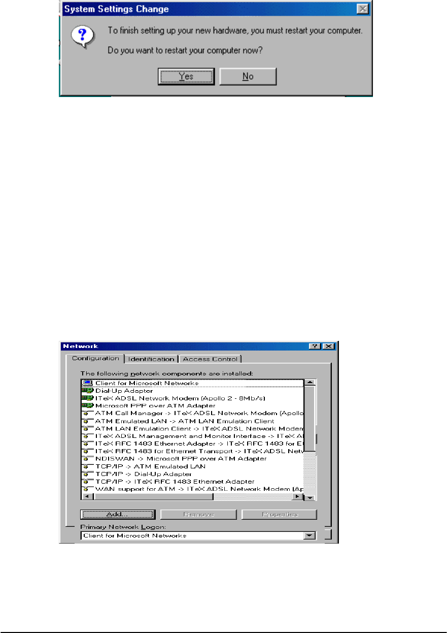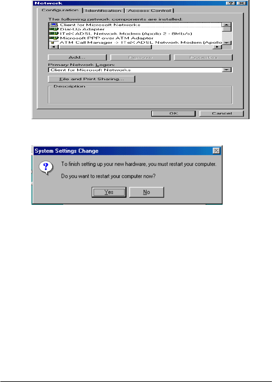 10. UNINSTALLING THE APOLLO 2 ADSL NETWORK MODEM AND TEST