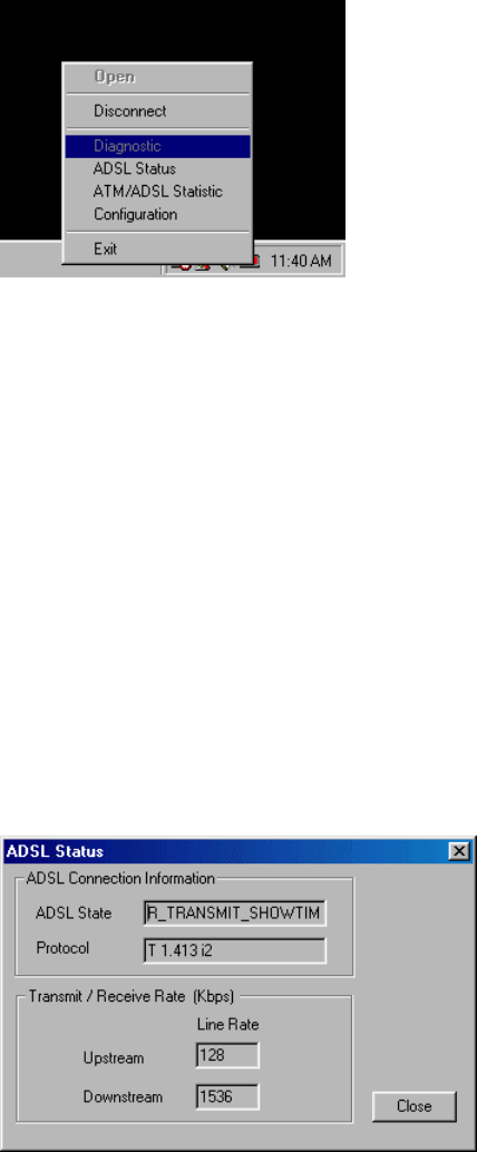 The Modem Icon Utility will allow the user to monitor the ADSL modem's connection and