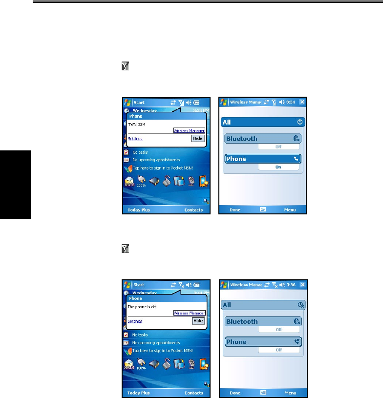 Wireless Manager provides a quick way to control the Bluetooth, Phone, and WLAN settings.