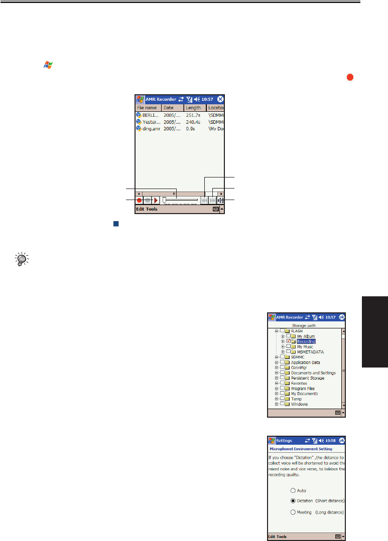 program to record messages. AMR Recorder will save the recordings as AMR files in the \My Device\Flash\