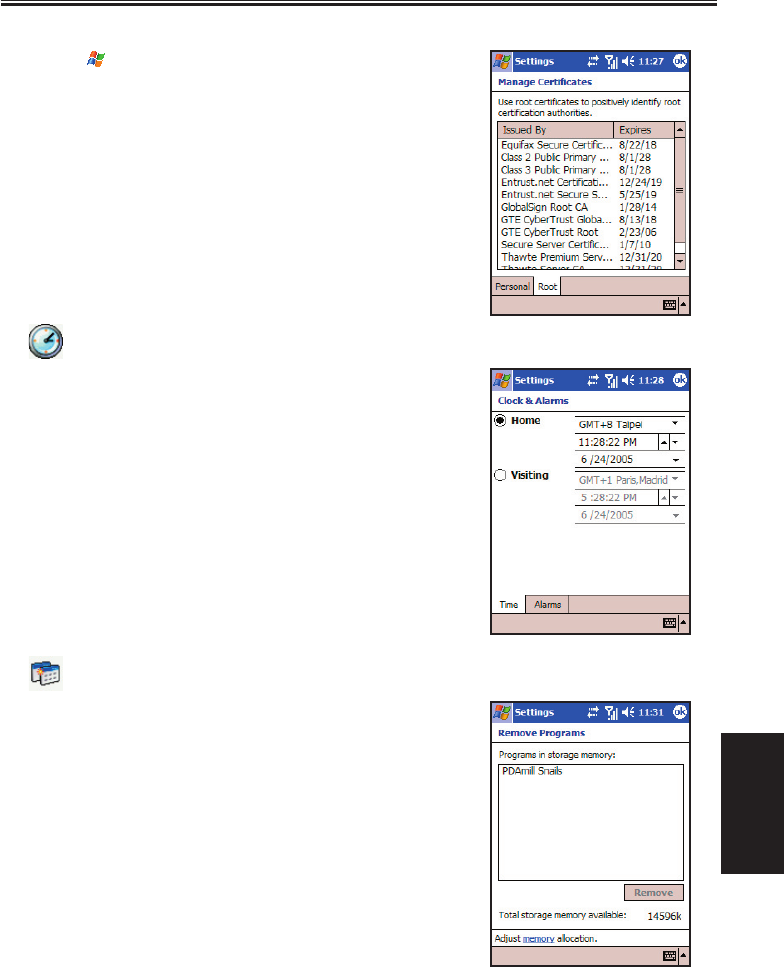 You may add/delete the public key certificates to/from your Pocket PC Phone. These certificates help