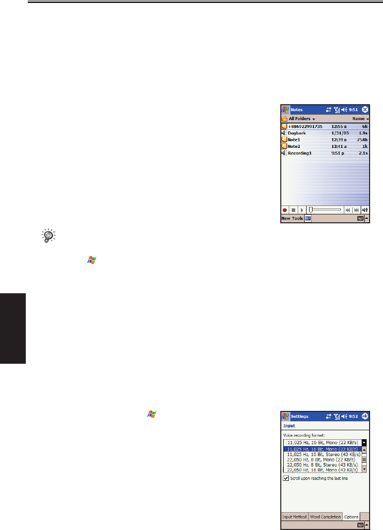 stored on the Pocket PC Phone with the format of AMR ( .awb),