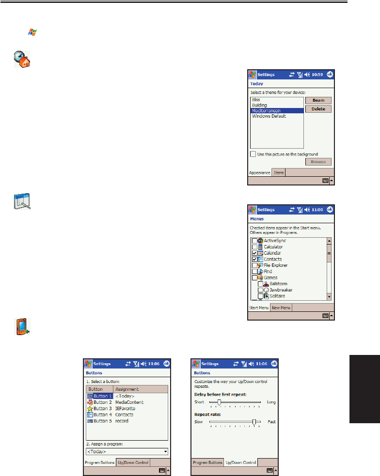 This item assigns programs to the hardware buttons and set the repeat rate of the Up/Down direction keys.