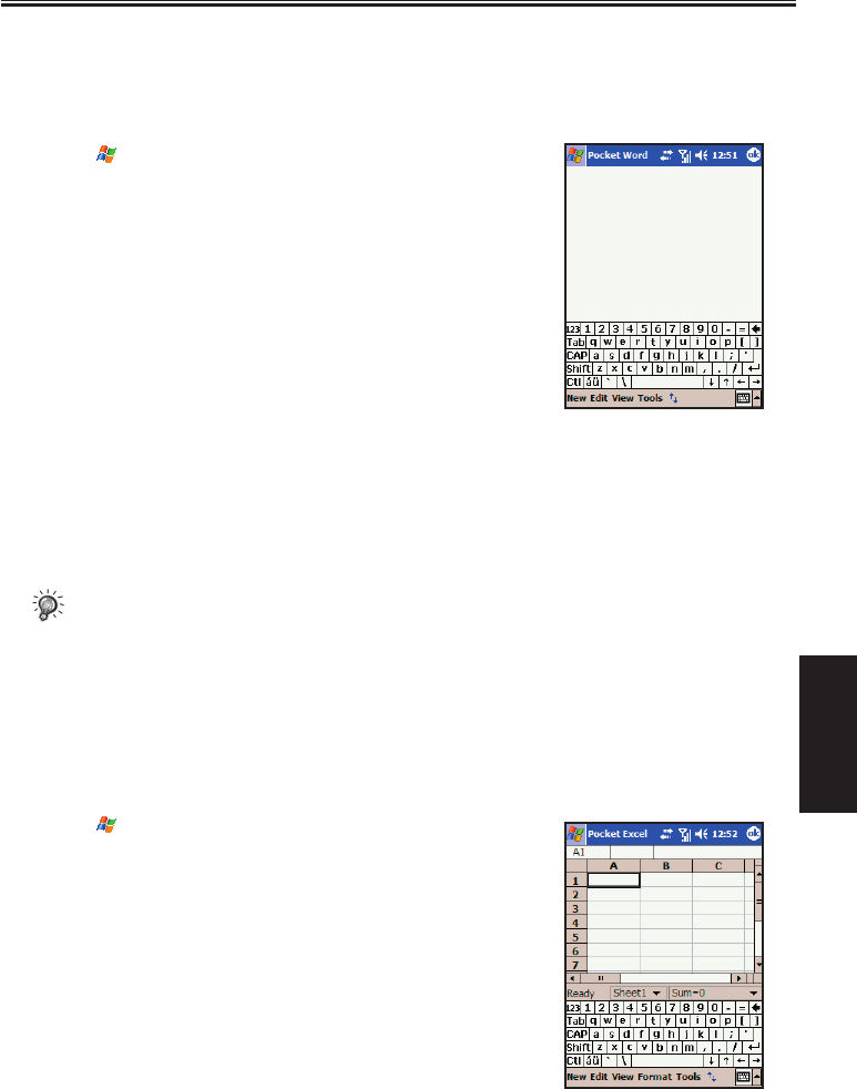 You can create and edit documents and templates in Microsoft Pocket Word just as you do in Microsoft