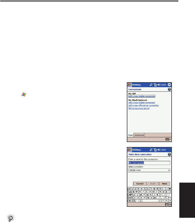 view the Internet or intranet, or download email. You do not need to create a new connection on your