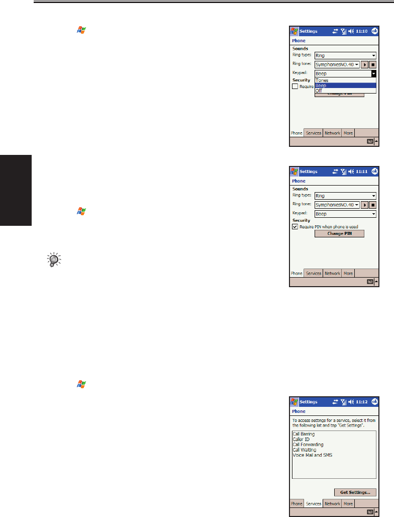 and the keypad tone to be used when entering phone numbers. You can also protect your phone from