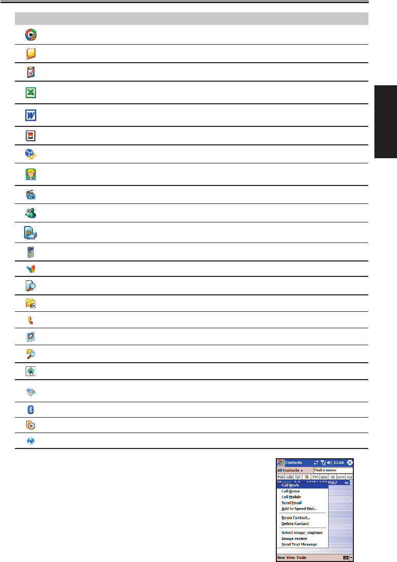 program. To access a pop-up menu, tap and hold the stylus on the name