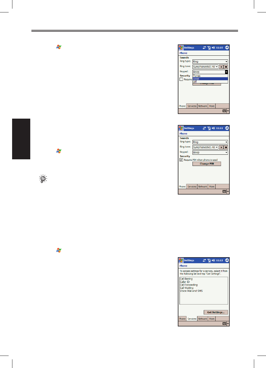 and the keypad tone to be used when entering phone numbers. You can also protect your phone from
