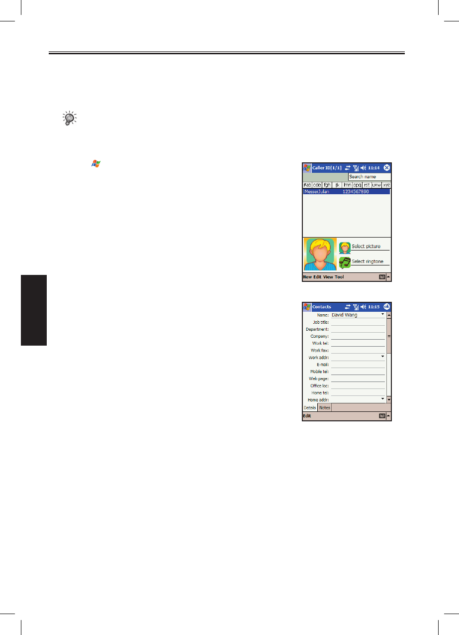 • You cannot use Caller ID to manage the contact information stored in the SIM card. You need