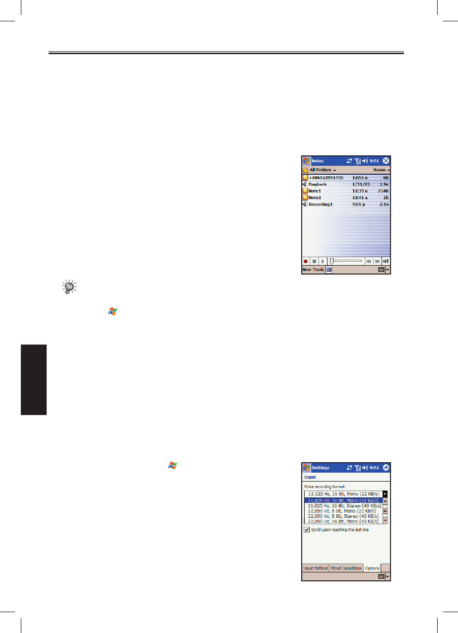 stored on the Pocket PC Phone with the format of AMR ( .awb),