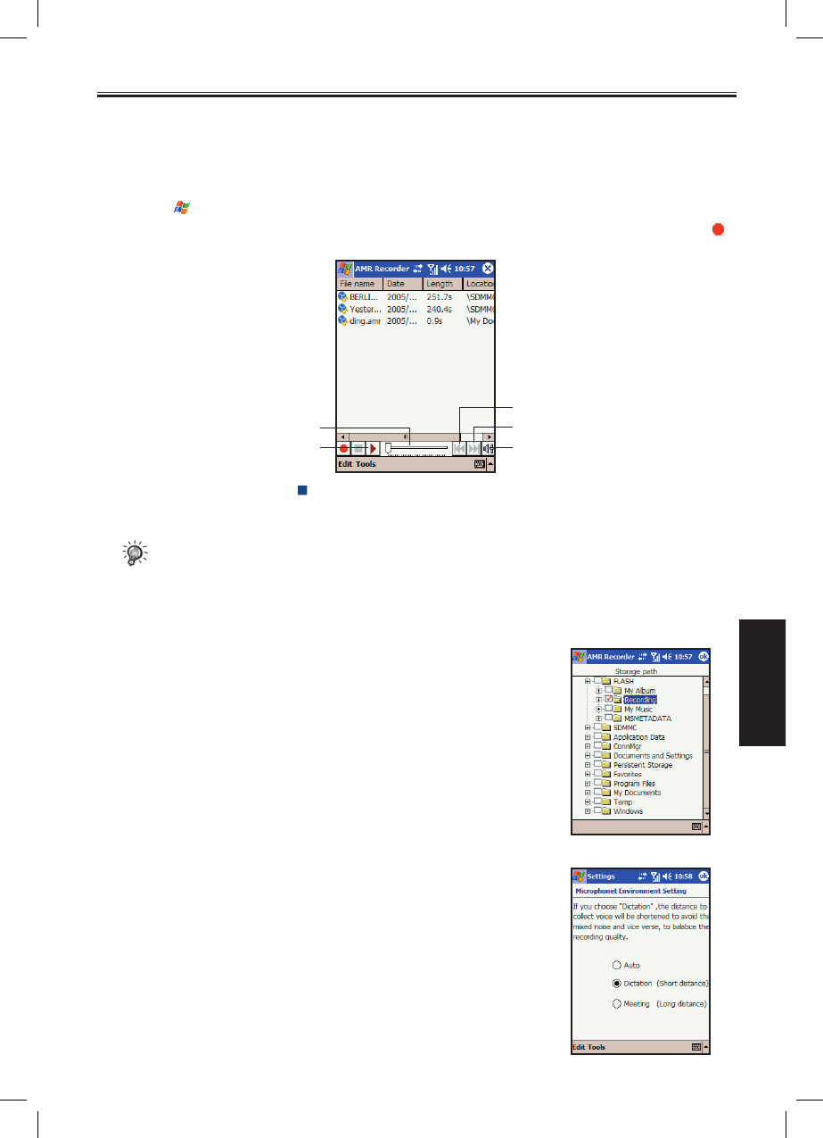 program to record messages. AMR Recorder will save the recordings as AMR files in the My Device\Flash\