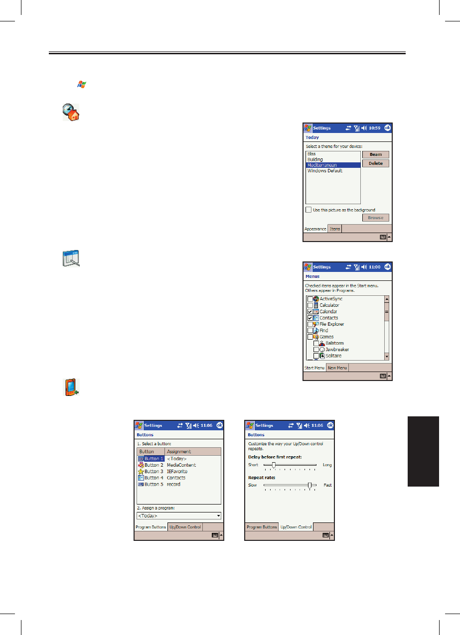 This item assigns programs to the hardware buttons and set the repeat rate of the Up/Down direction keys.