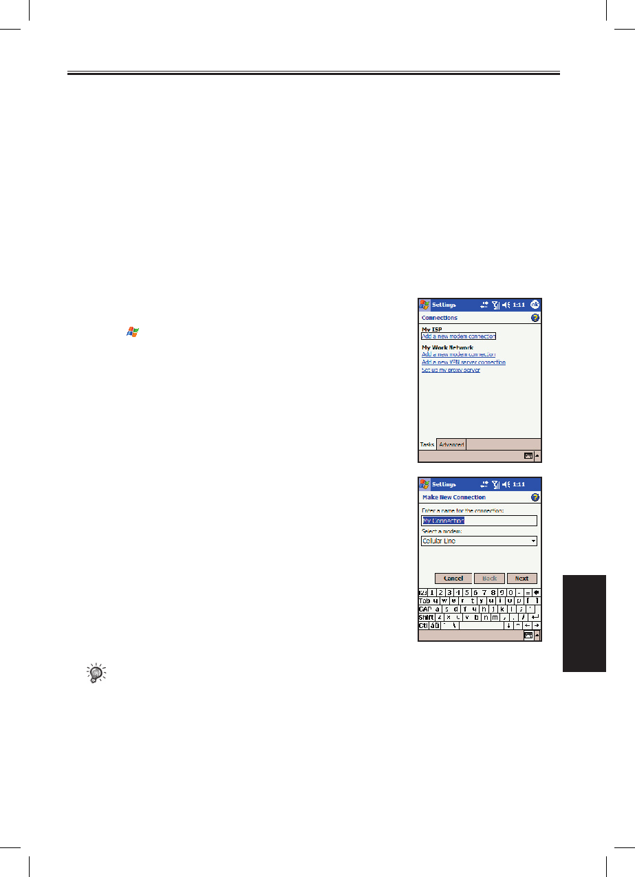 view the Internet or intranet, or download email. You do not need to create a new connection on your