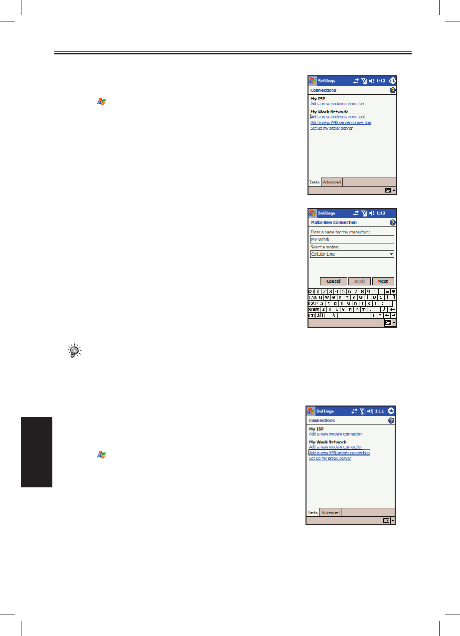 3. The Pocket PC Phone has several existing connections for your selection. Tap the desired connection