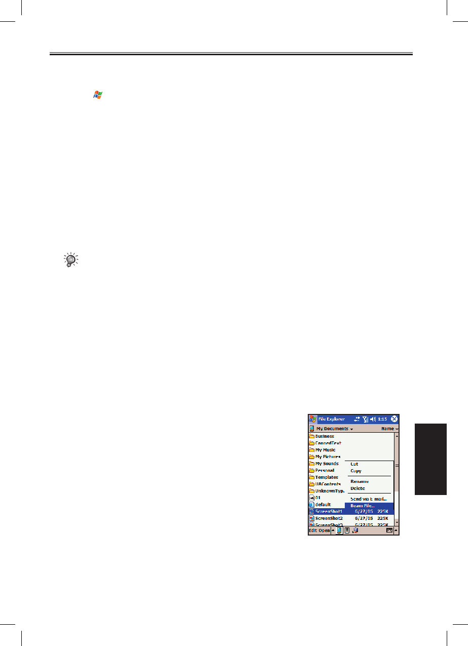 computer by infrared, see the ActiveSync Help on your desktop computer.)