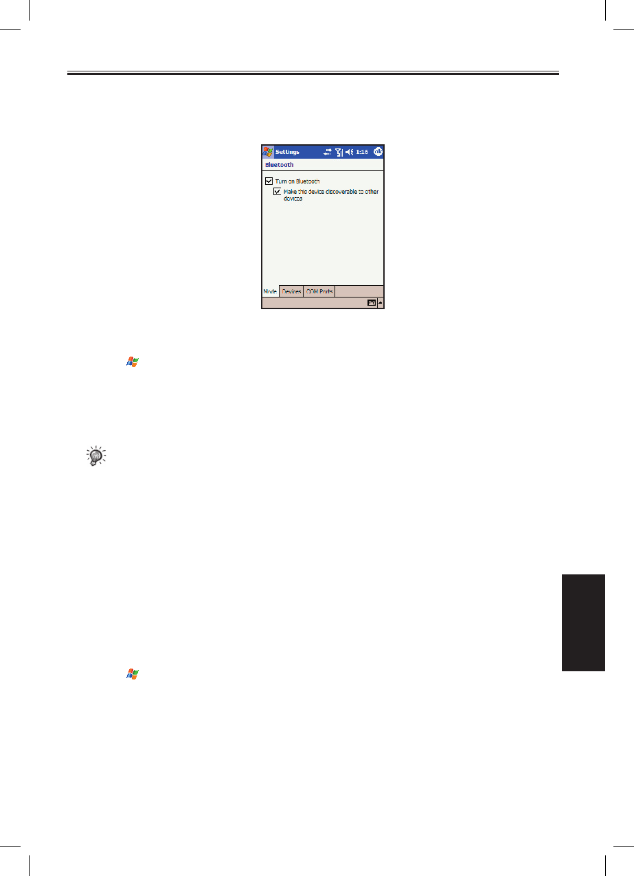 2. Turn on the Bluetooth as described earlier in the “Turning on and off Bluetooth” section.