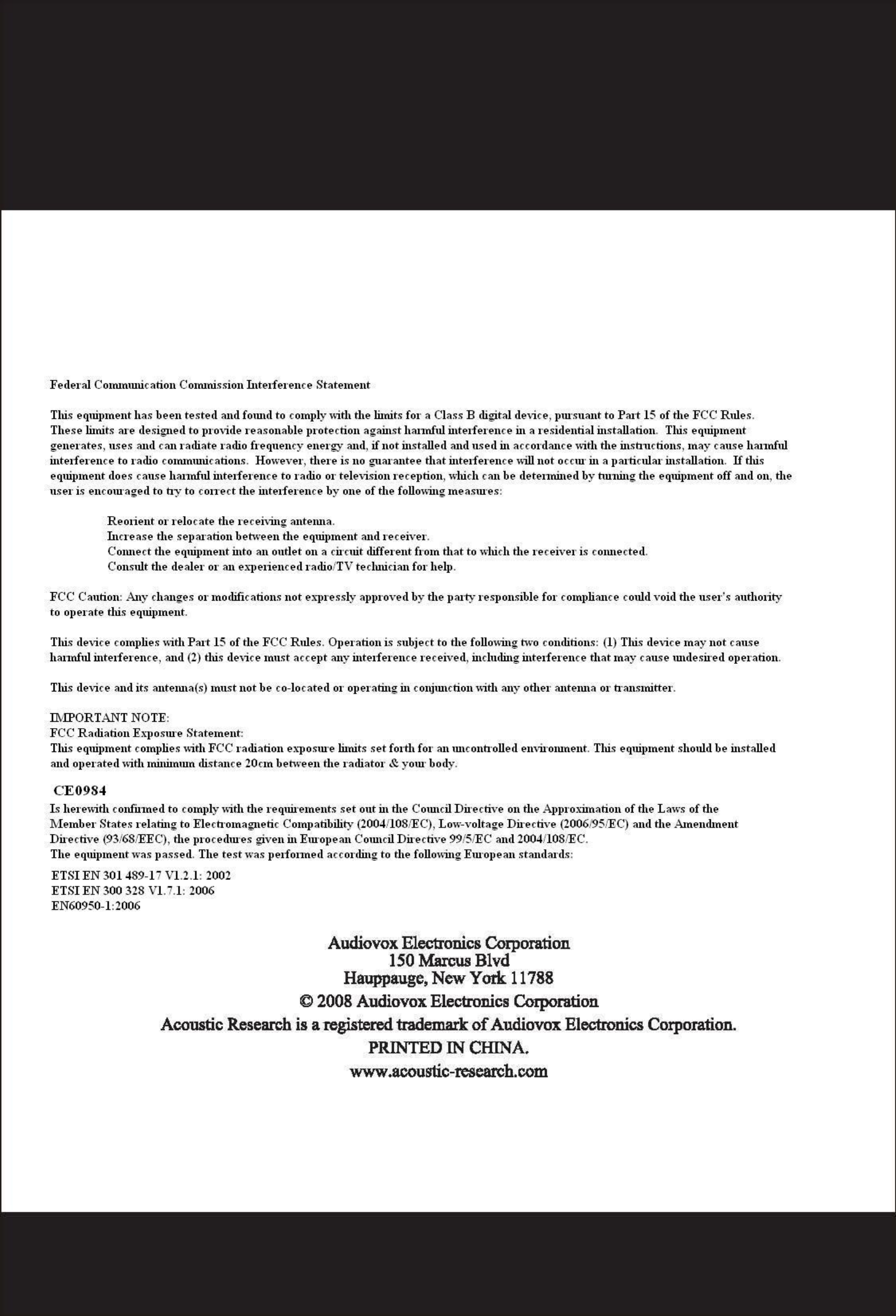 Kinyo ARM80 Portable Bluetooth 2.0 Speaker / FM Tuner User Manual