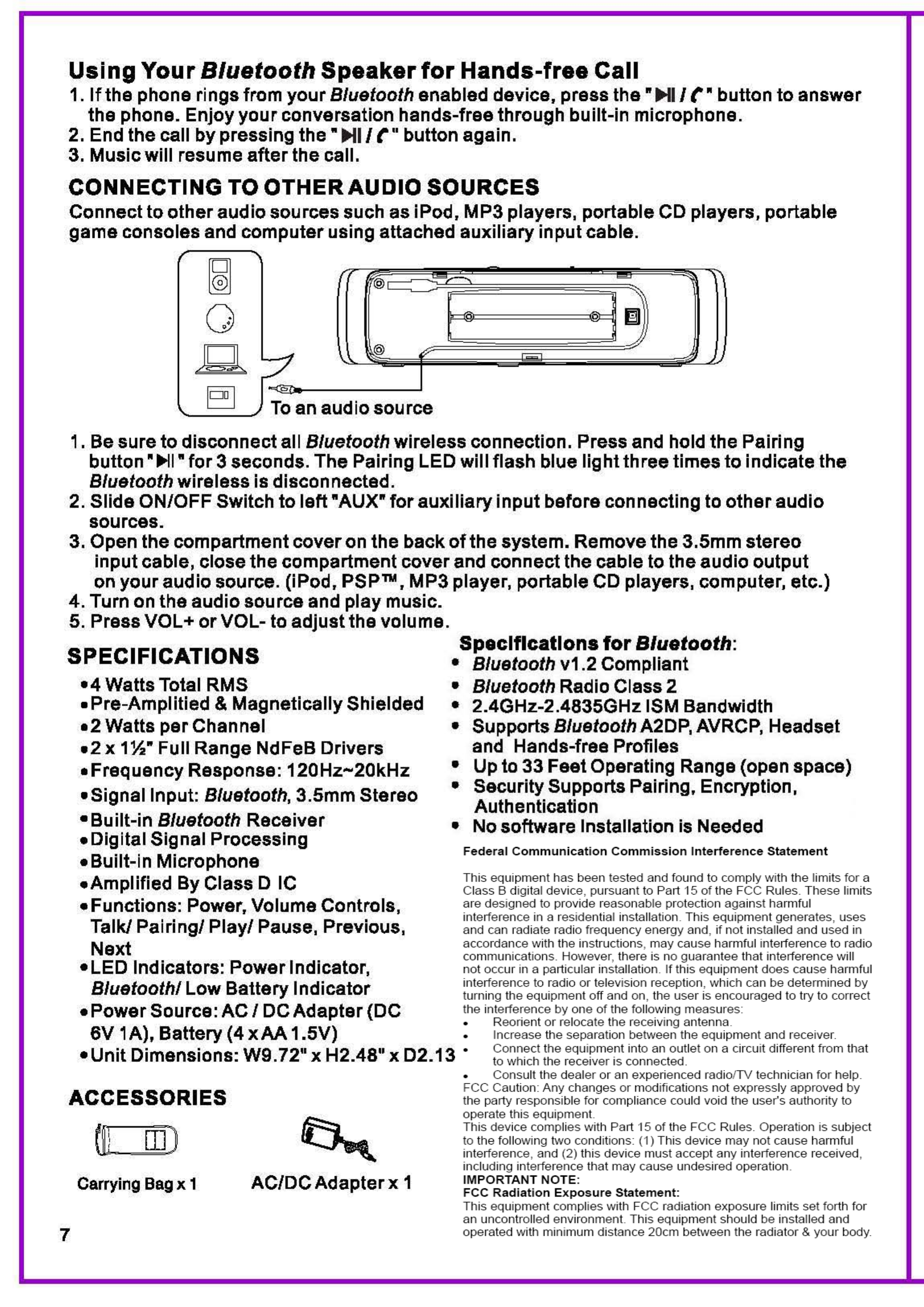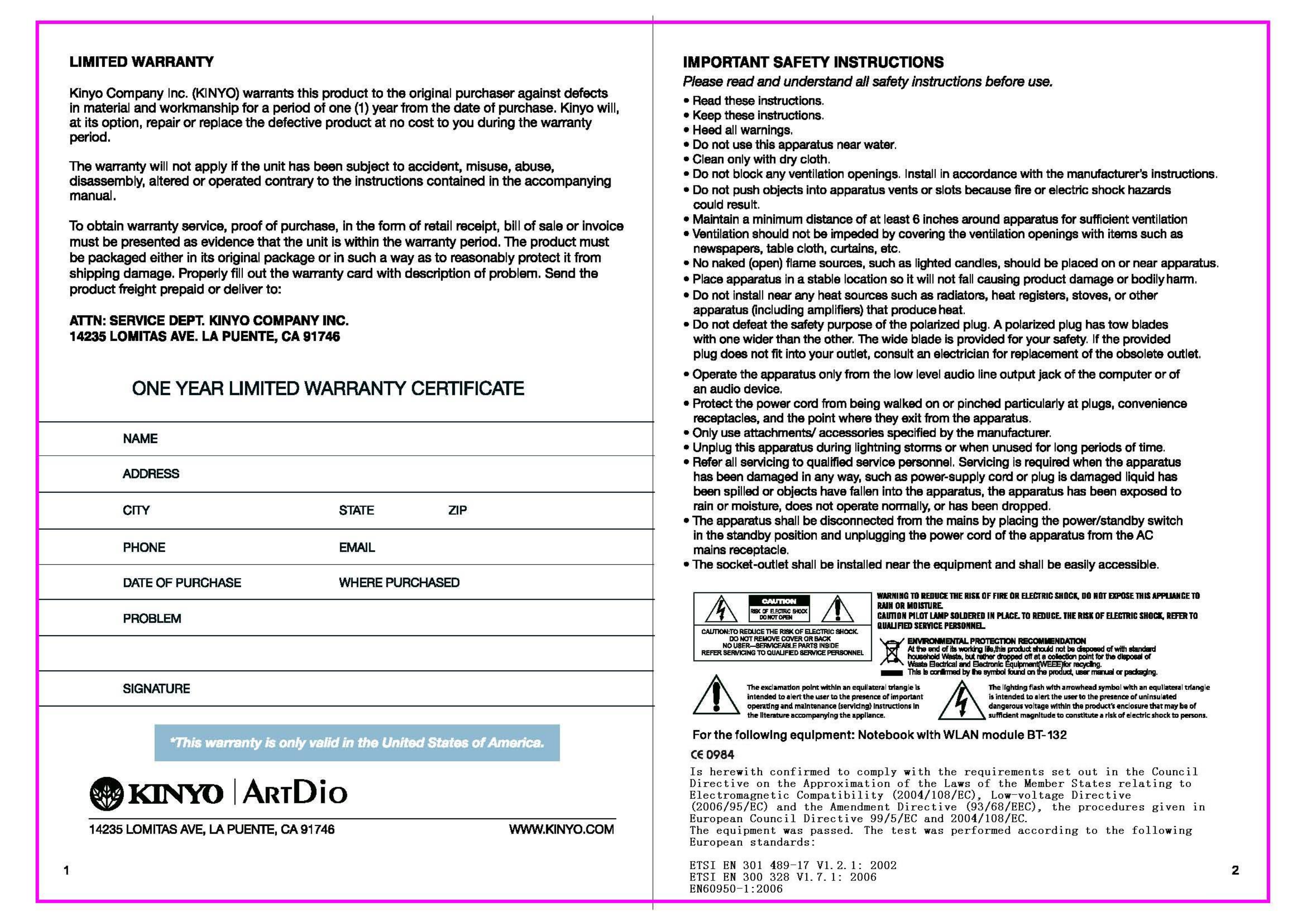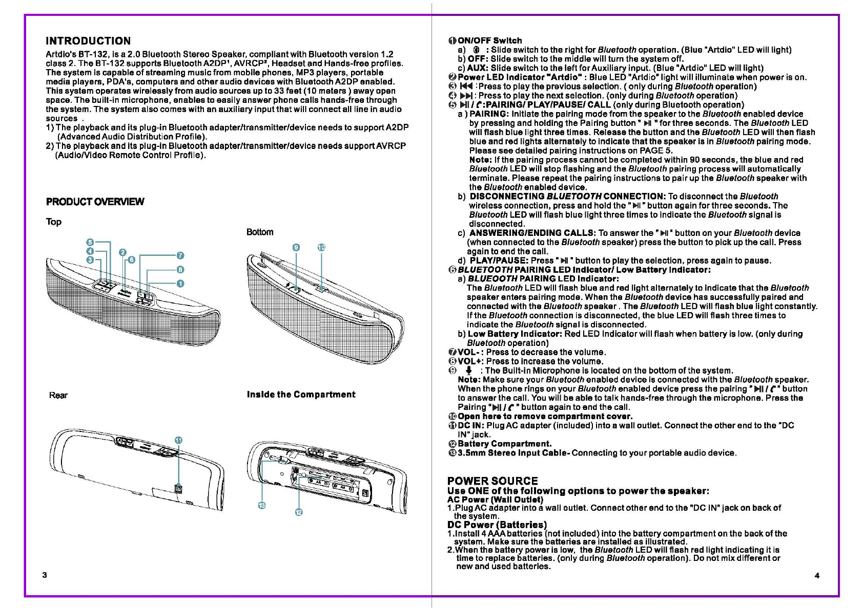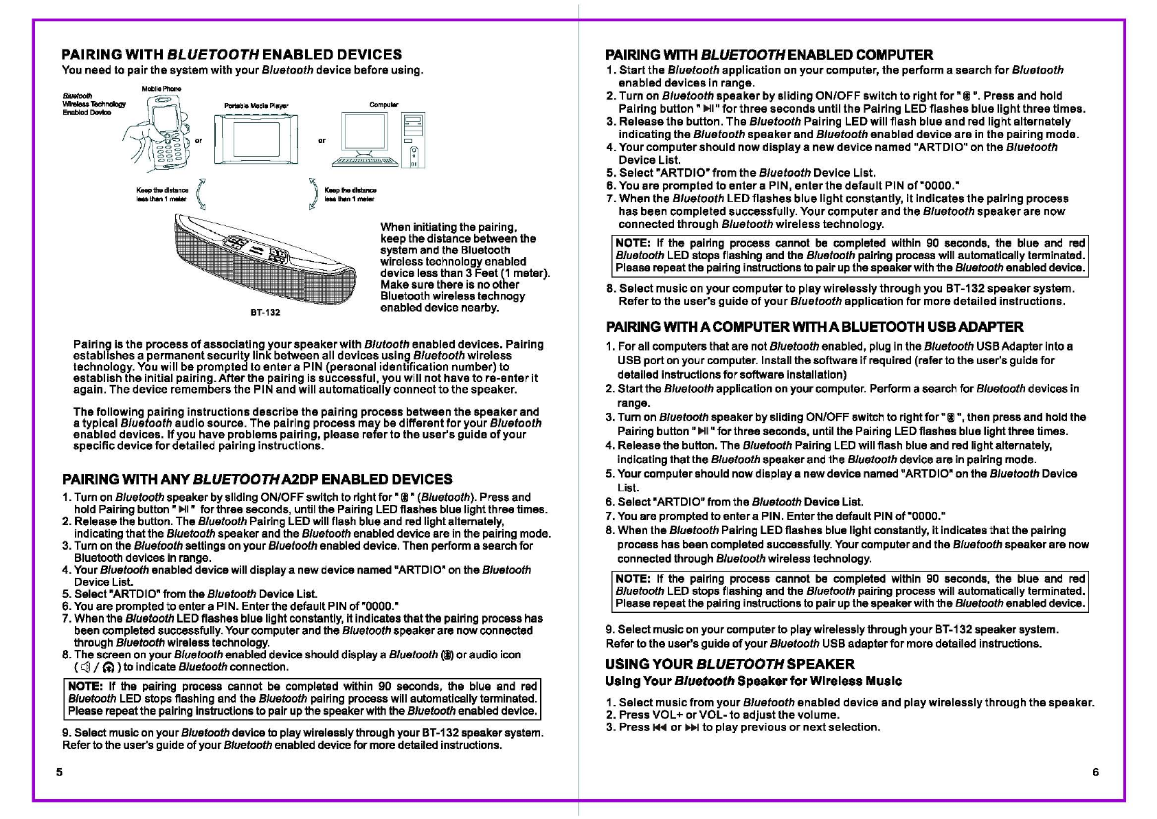 Kinyo ARTDIOBT132 2.0 Portable Bluetooth Stereo Speaker User Manual