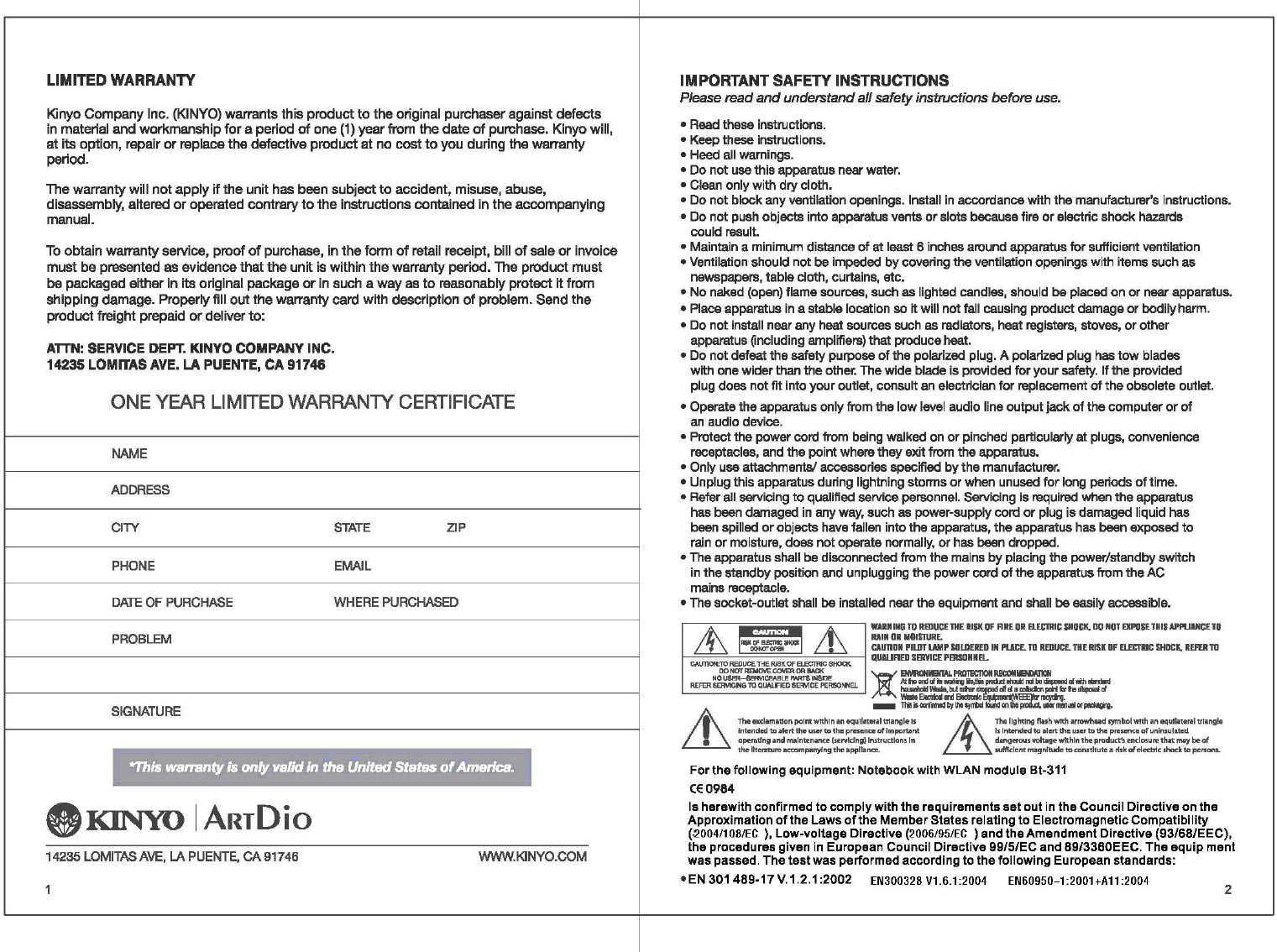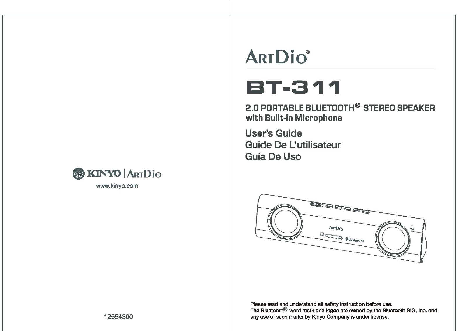 Kinyo Co., Ltd 2.0 Portable Stereo Bluetooth Speaker BT 311english guid