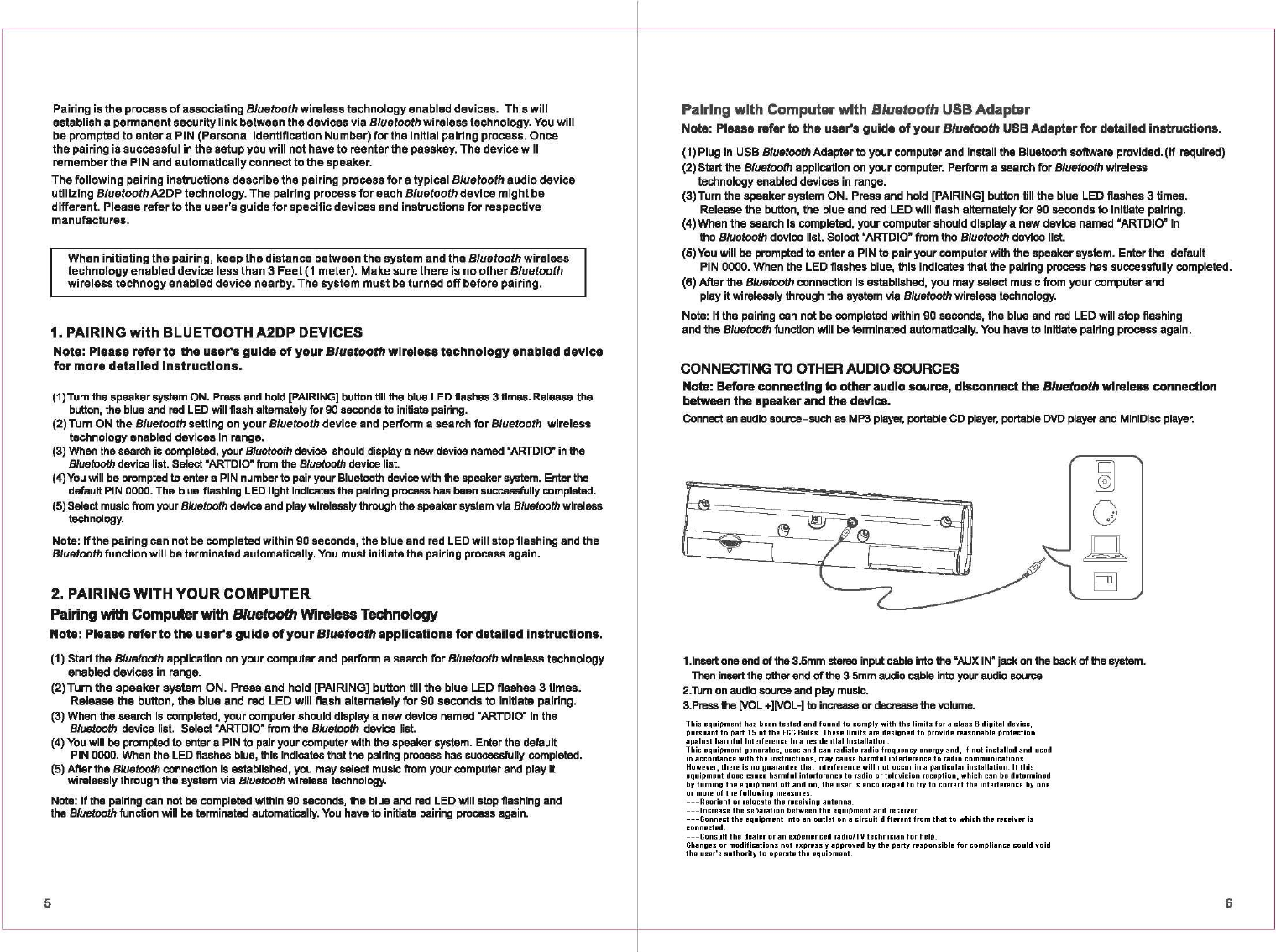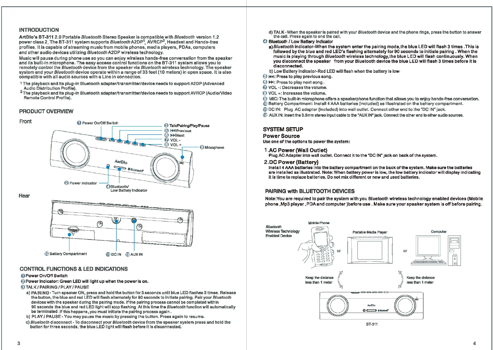 Kinyo ARTDIOBT311 2.0 Portable Stereo Bluetooth Speaker User Manual BT 311english guid