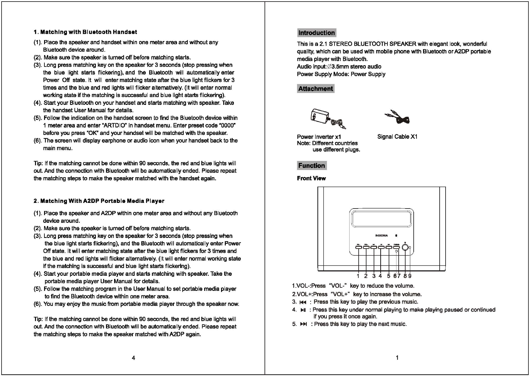Kinyo Co., Ltd 2.1 STEREO BLUETOOTH SPEAKER Manual